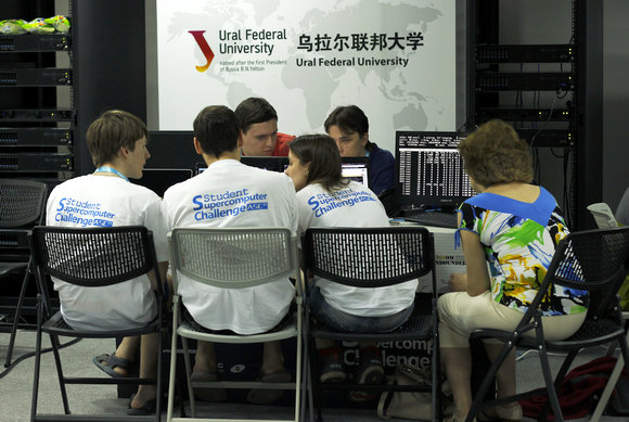 乌拉尔联邦大学也是首次参赛,队伍由五位计算机科学系的学生组成。带队老师表示,由于学校没有超级计算机配备的Xeon Phi芯片,这支队伍今年2月才正式确定成员,3月队员首次在莫斯科大学操作超级计算机。队员们特意提早来到广州适应环境,全力以赴投入竞赛。在决赛的集群搭建和调试阶段,虽然队员们耗费较长时间来熟悉官方提供的硬件,也遇到了网络故障等问题,但整体气氛是轻松的。队员玛林娜表示,他们是抱着向其他学校学习的态度来参赛的,并借此机会来观摩平时难以接触到的高端超算设备。