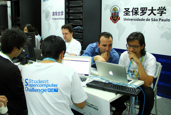 圣保罗州立大学团队是首次参加国际性的超算竞赛,同时也是巴西第一支成立并参加此类超算竞赛的队伍。从2013年10月开始,带队老师就在圣保罗州立大学艺术、科学与人文学院进行队员招募。经过一段时间的选择与磨合,团队最终成型,成员皆为大三、大四的学生。他们中有一些已经具有编程工作的实际经验,这也是圣保罗大学团队具有竞争优势的一点。除了参加ASC14外,他们还报名参加今年6月将在德国举行的国际大学生超级计算机竞赛(ISC)。虽然在准备工作上有很大程度的重叠,但是团队成员们都在非常努力地完成挑战。对他们而言,参加比赛只是计划中的一部分,他们更希望借此举动提升学院在相关领域的专业能力和竞争实力。