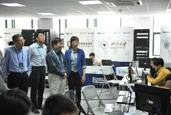 4月24日上午,许宁生校长考察了在国家超级计算广州中心举办的2014年ASC世界大学生超级计算机竞赛(以下简称“ASC14”)总决赛现场。ASC14组委会主席、数学与计算科学学院许跃生教授,校长办公室主任陈望南,浪潮集团高性能计算应用支持经理吕文静陪同考察。