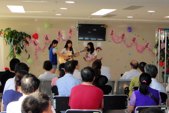 在洪苏金老师的鼓舞下,现场另外一位老先生登台献唱了歌曲《爱拼才会赢》,并与志愿者合唱歌曲《千千阙歌》,向在座的人传递了满满的正能量。