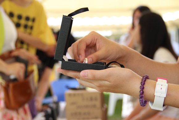戒指设计简约大气,金属指环镌刻上年份2013和英文“SUN YAT-SEN UNIVERSITY”。简简单单,如同告别——无需过多言语只是轻轻放在心里。作为“中大1924”的负责人,这款戒指不仅成为他们对中大的承诺,更为中大学子创造出一份新的文化记忆。据悉,这款纪念戒指自上市以来,已售出数百套,反响热烈,不仅是今年的毕业生,连尚未毕业的学子们和已毕业校友们都热烈抢购,不少情侣到中大1924摊位前选购戒指,更调侃这是一款求婚圣品。