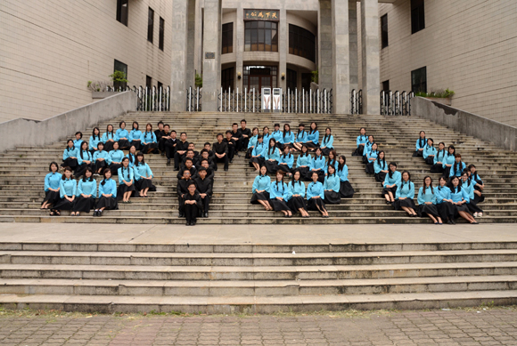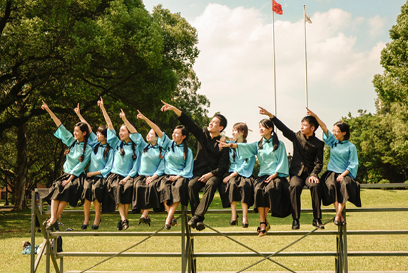 毕业照是毕业季一道最为亮丽的风景。09级管理学院会计专业的陈晓阳,郑曼琳,郑裕强,张丰四位同学,不辞辛苦组织同学集体拍摄了一组班级民国风毕业照。其中,在永芳堂阶梯上拍摄的“SYSU”字样毕业照,整齐精准的字母队列令人叹然,而蓝衣黑裙的姑娘和一袭黑色中山装的少年令复古与青春完美结合。这张照片上传到微博后,引发同学们的热议,网友@lxhduck打趣道“女孩子多啊,听说现在很多家庭也是女方理财,看来是在大学里培养好的”。对于3:1的男女比例,不少人调侃“报错专业毁一生”。