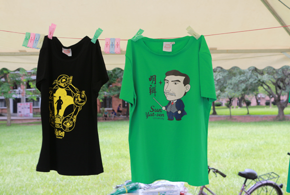 各式中大T恤吸引了许多毕业生驻足挑选,以太工作室的小黄同学介绍到,这些T恤有的以魔法阵和校训为设计要素,有的以校园的红砖绿瓦为要素,是希望我们的毕业生可以牢记校训。她还说:“很开心能为毕业生提供纪念品,曾有同学说在公车上看到穿着中大T恤的同学时感到非常温馨。一样的中大T恤使得离家在外的同学更有归属感,这也使我们非常有成就感。”
