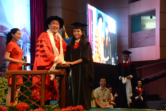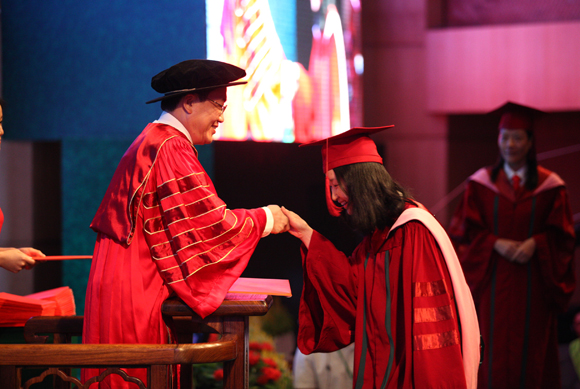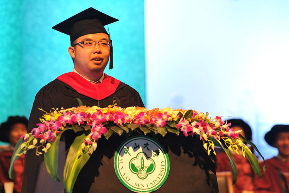 谈到毕业后赴香港、美国深造,他说:“我相信只有勇敢地走出去,才能更完美地走回来。”并希望毕业生能够具备激情、胸怀与坚韧不拔的精神,这是走向成功必备的三要素。