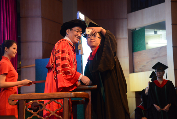 作为资讯管理学院第一个上台受礼的毕业生,吴同学在台上等候期间,站着聆听许良杰校友八分钟的演讲。受礼完毕,她很激动:“现在我的毛孔都是张开的,你能想象我现在的心情吗?我刚才站着听完了师兄的演讲,他还看了我一眼,他的故事很励志,让我很感动。”