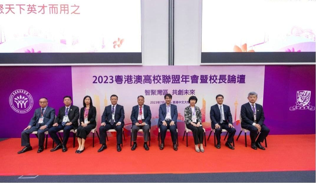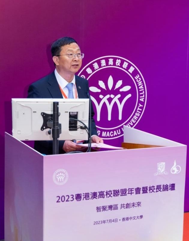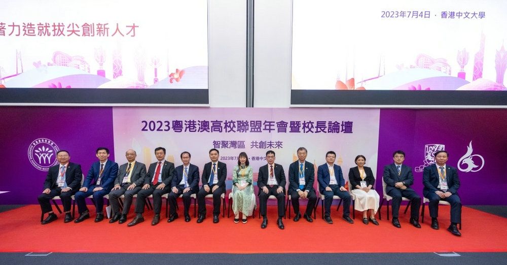 中大新闻网广州7月7日电(通讯员吴佳文)7月4日,2023粤港澳高校联盟年会暨校长论坛在香港中文大学成功举办。中央人民政府驻香港特别行政区联络办公室、中央人民政府驻澳门特别行政区联络办公室、教育部港澳台事务办公室、广东省教育厅、广东省人民政府港澳事务办公室、香港特别行政区政府教育局、澳门特别行政区政府教育及青年发展局等相关政府部门领导,以及粤港澳三地43所成员院校的校领导、院系领导和职能部门负责人约150人参会,围绕“智聚湾区、共创未来”主题,共议联盟高质量发展大计。