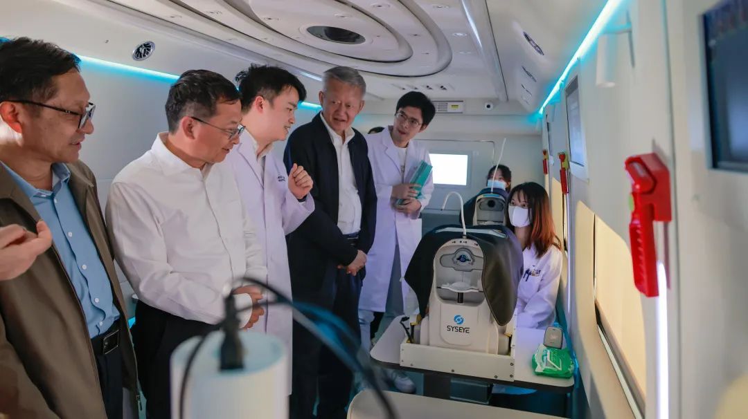 一辆早几日从广州开来的5G智能眼科巡诊车正在当地开展白内障义诊。中山眼科中心林浩添团队的医务人员在这里开展了眼科疾病筛查和白内障手术等。
