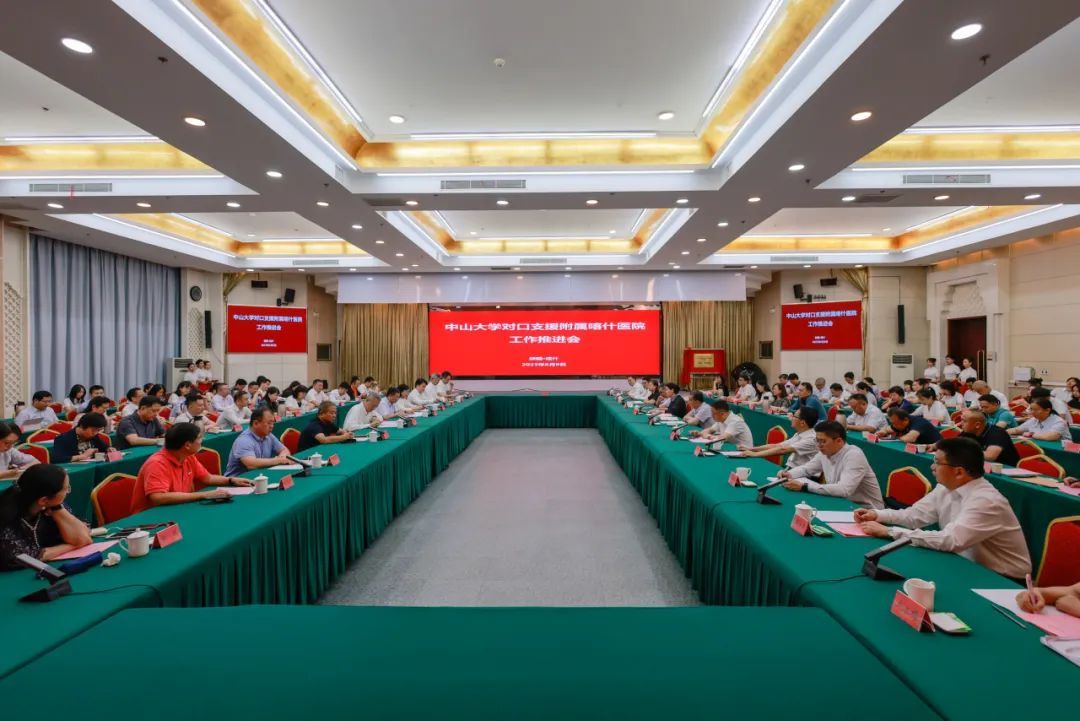 8月9日下午,陈春声书记、高松校长一行在喀什参加了bat365在线中国登录入口对口支援附属喀什医院工作推进会。