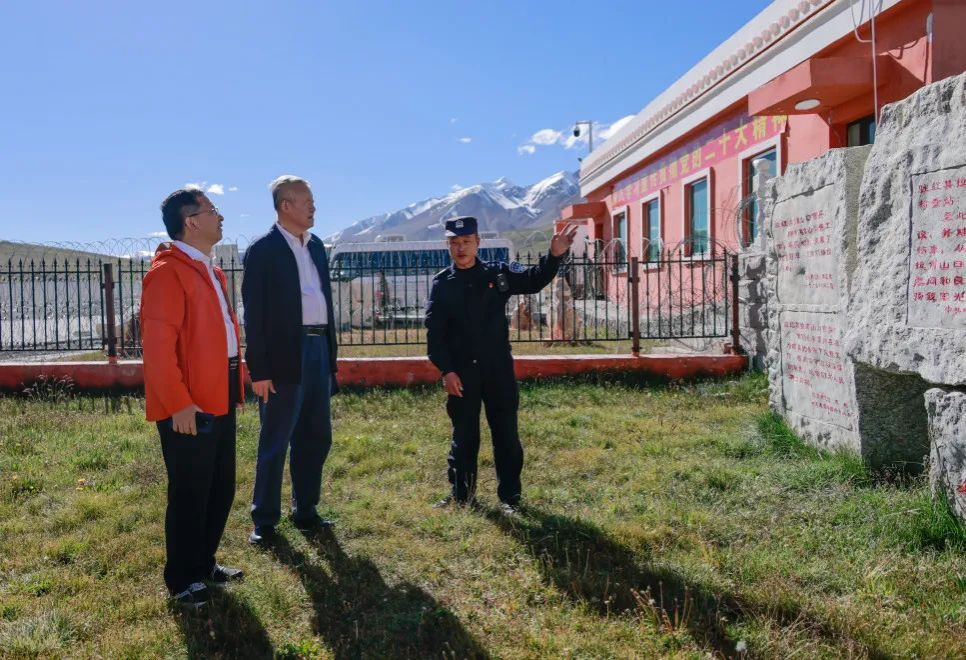 8月10日当天,结束在塔县人民医院的调研慰问后,陈春声书记、高松校长一行前往红其拉甫调研了解边境管理工作,开展爱国主义教育,并为出入境边防检查站前哨班送上药物。