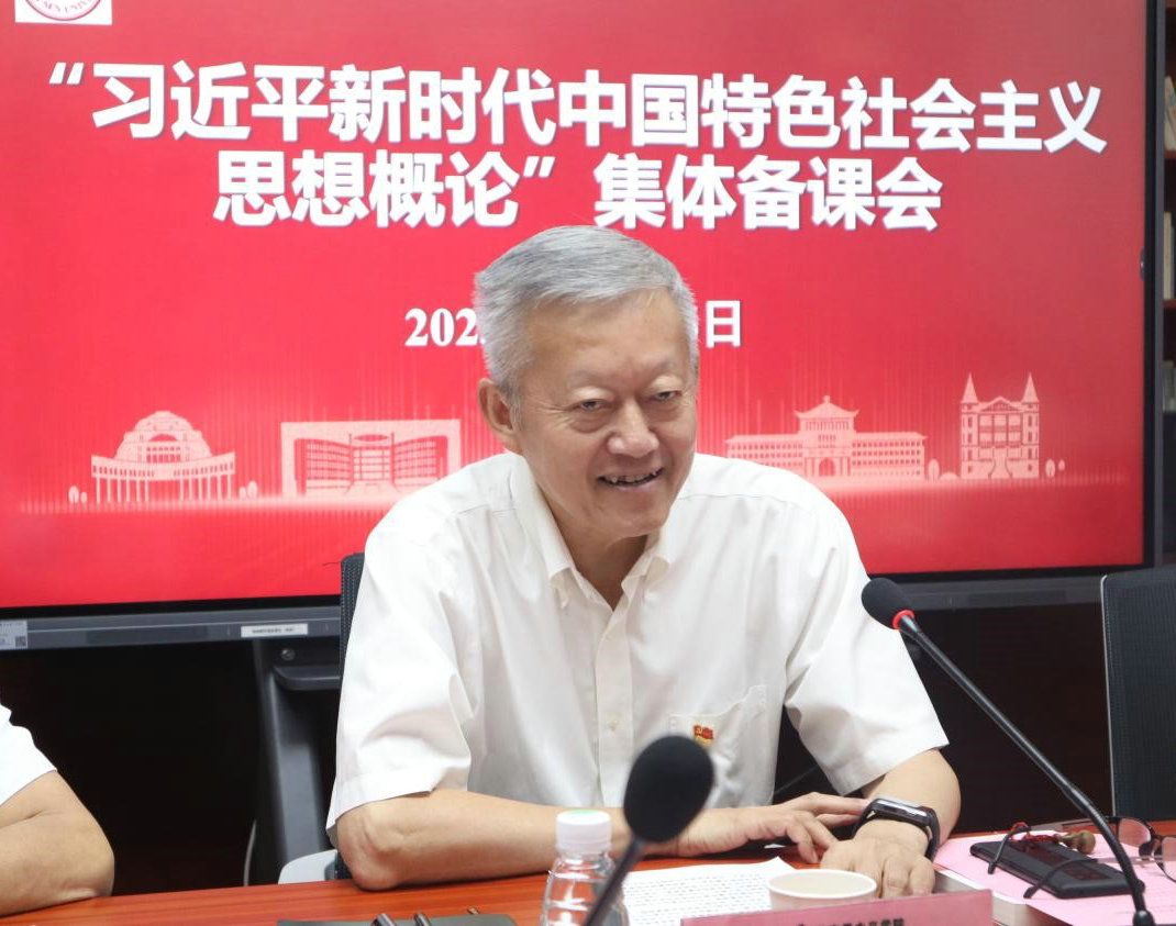 马克思主义学院党委书记陈有志指出,要努力把学校领导的关怀以及学习贯彻习近平新时代中国特色社会主义思想主题教育的成效转化为建设“习近平新时代中国特色社会主义思想概论”这门课程的成效上来,同时把习近平新时代中国特色社会主义思想深度融入各门思政课里面,扎实推进以习近平新时代中国特色社会主义思想为核心内容的思政课课程群建设。他强调,要以党建引领“习近平新时代中国特色社会主义思想概论”等思政课程建设,发挥习近平新时代中国特色社会主义思想概论教研室多学科交叉优势,将学校发展的生动案例融入思政课讲授当中,让学生听课更加入脑入心。