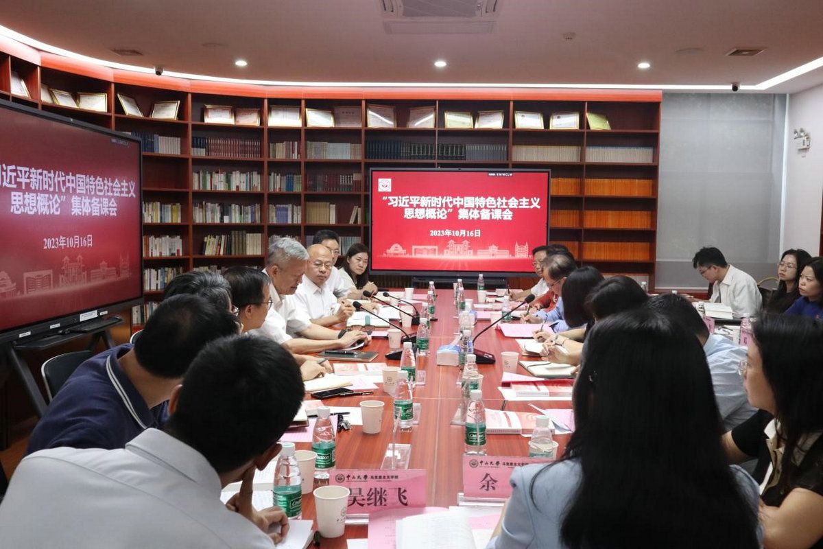 马克思主义学院院长林进平主持集体备课会。他指出,中央马工程统编教材《习近平新时代中国特色社会主义思想概论》已于2023年8月正式出版并投入使用。这是第一部全面系统阐述习近平新时代中国特色社会主义思想的统编教材,是高校思想政治理论课的权威用书,是推进中国特色哲学社会科学教材体系建设的重要成果。为进一步推动教材优势转化为教学优势、推动习近平新时代中国特色社会主义思想进教材进课堂进头脑,马克思主义学院组织召开了这次集体备课会,正当其时,意义重大。