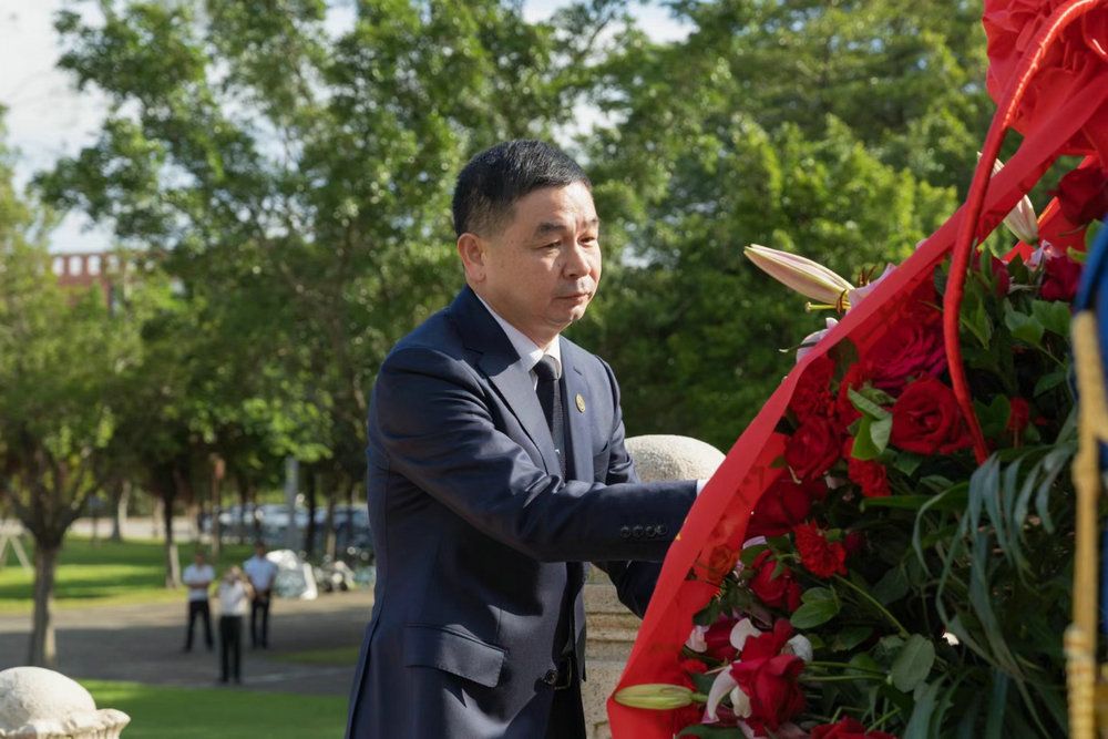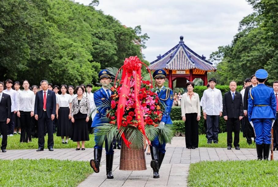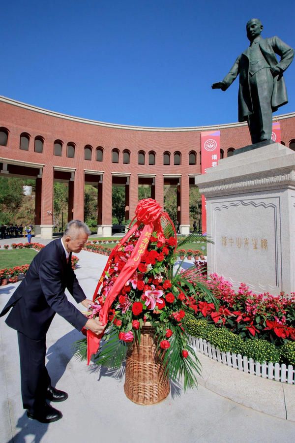 随后,全体人员向孙中山先生铜像行鞠躬礼。主礼校领导带领在场师生代表肃穆绕行,瞻仰先生铜像。