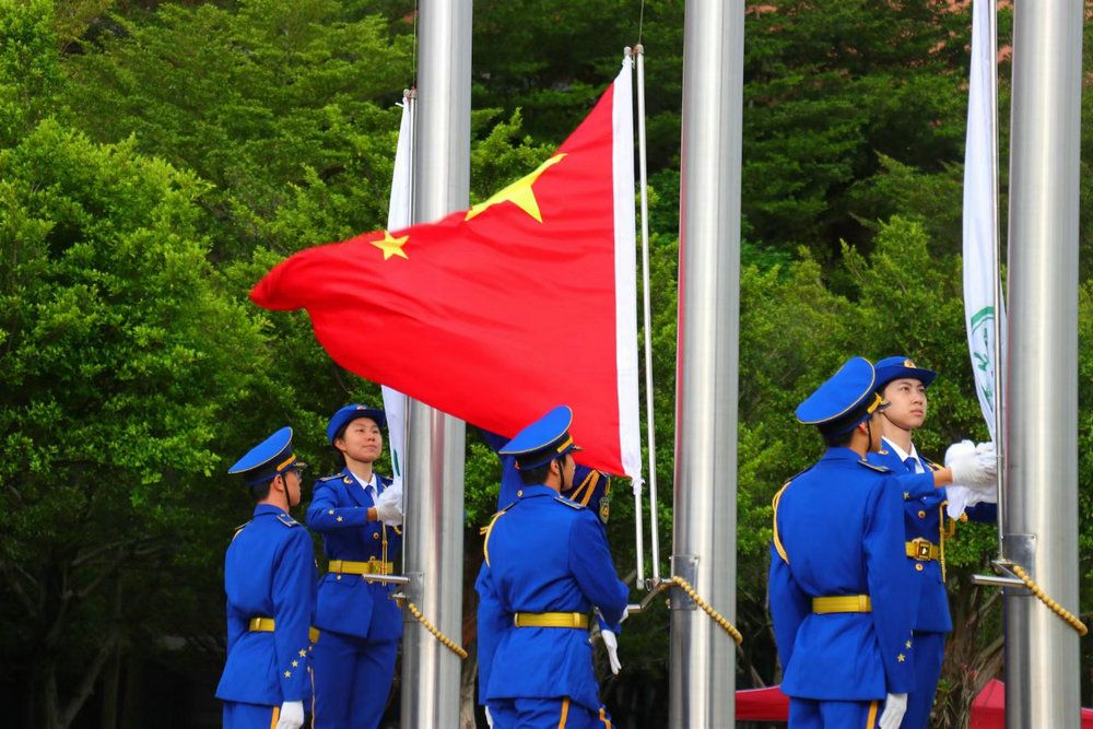 上午九时三十分,天高云淡,晨晖满地,仪式在三校区五校园同步举行。在庄严的国歌、校歌声中,五星红旗和bat365在线中国登录入口校旗先后升起、迎风飘扬,在场全体师生高声齐唱、行注目礼。