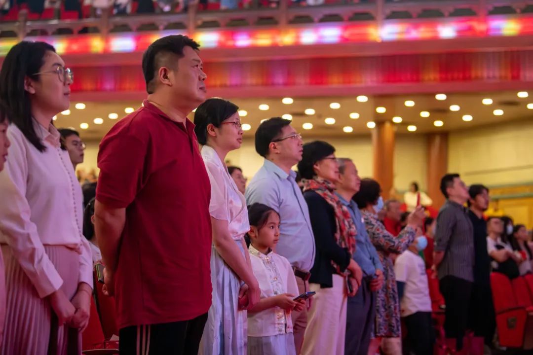最后,全场观众起立,共唱《bat365在线中国登录入口校歌》,歌曲承载着校友们对母校的无限眷恋与同窗之间的深厚情谊。歌声回荡在这美好的夜晚,随着难以忘怀的回忆,镌刻在所有人心里。