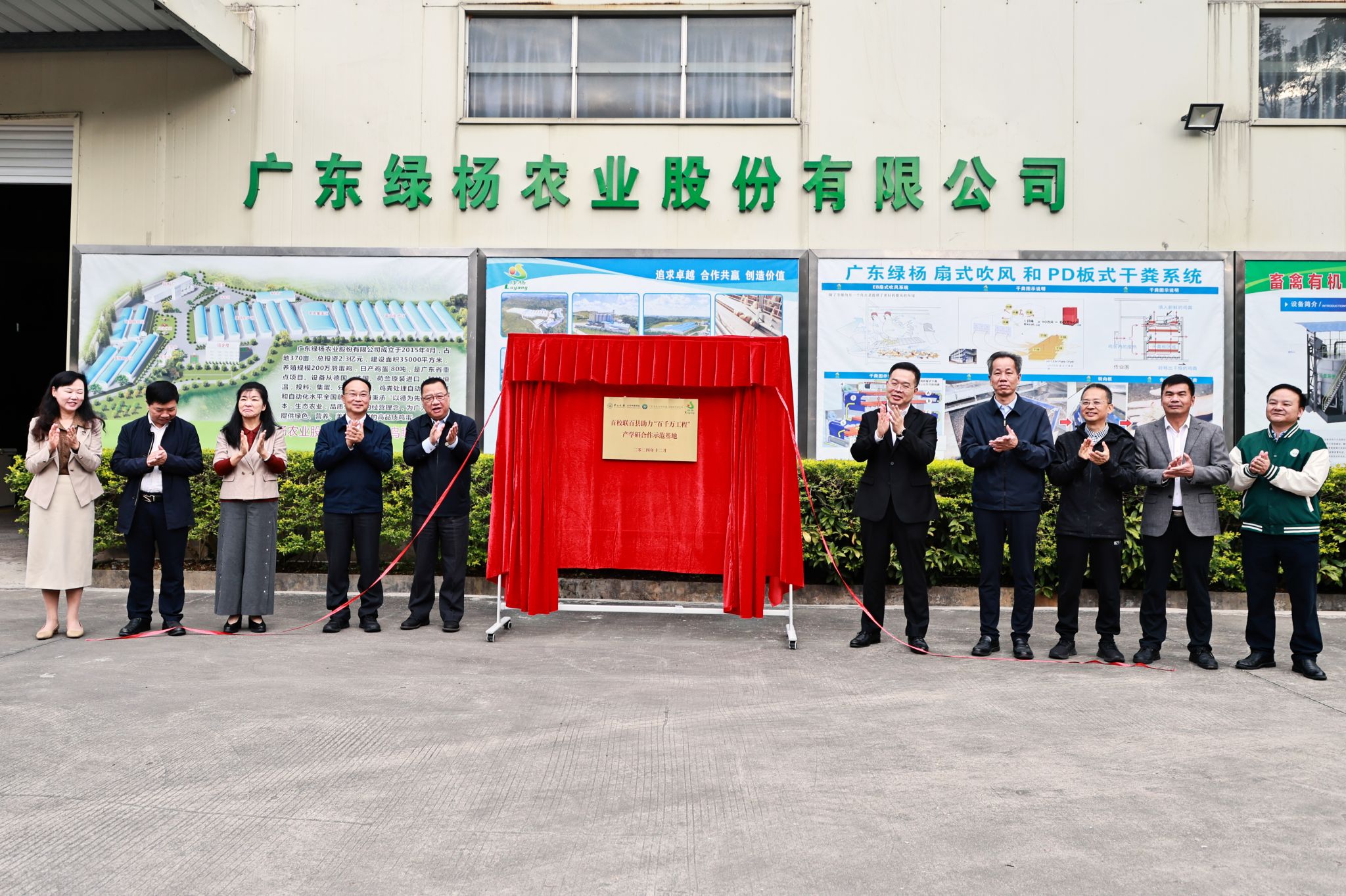 在广东绿杨农业股份有限公司考察时,调研组一行听取了生命科学学院曹永长教授团队长期以来着力突破蛋鸡养殖产业发展瓶颈和助力开展技术攻关的详细情况,现场举行了bat365在线中国登录入口生命科学学院、广东省农业科学院动物科学研究所“双百行动”产学研合作基地揭牌仪式。