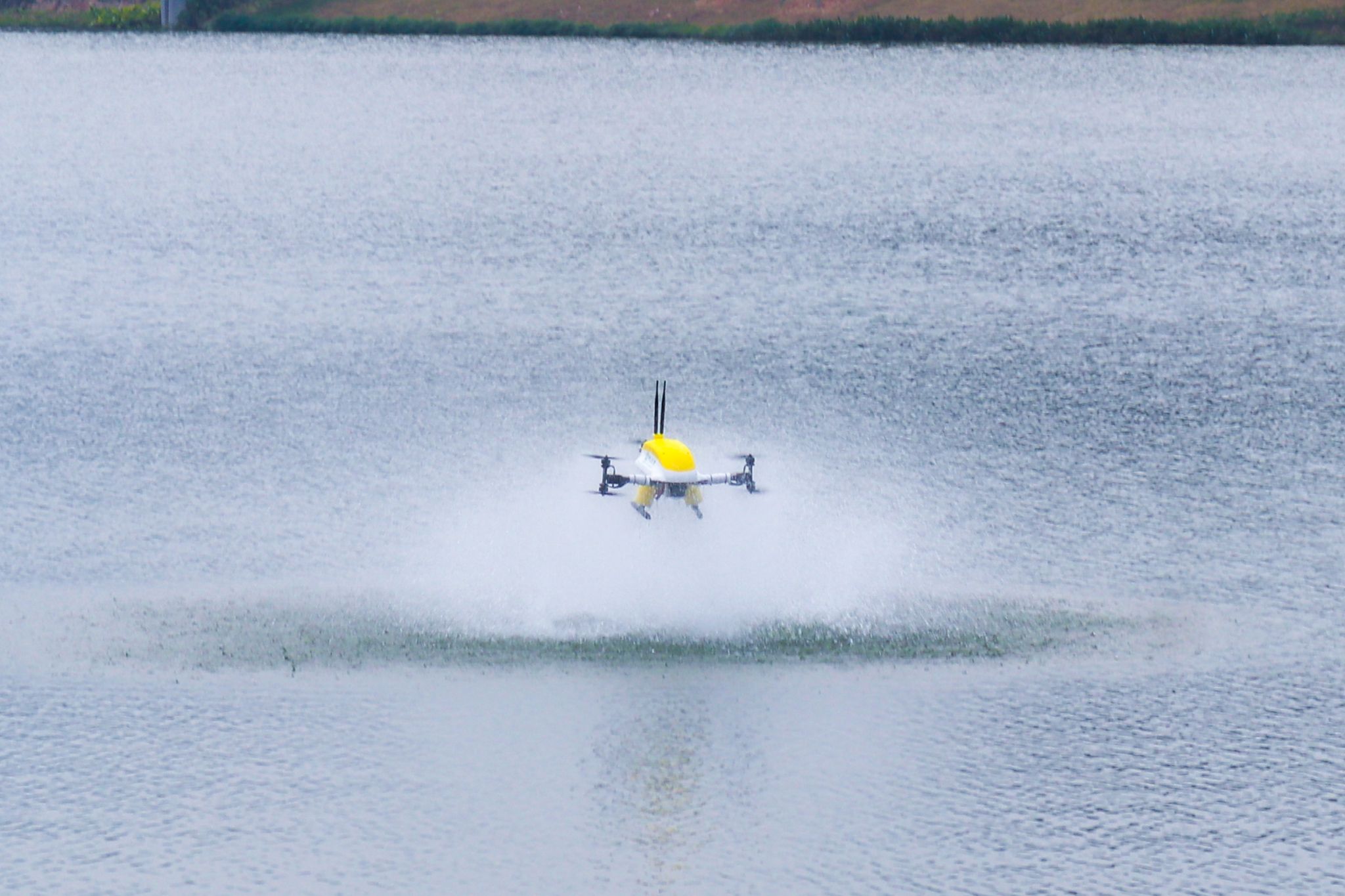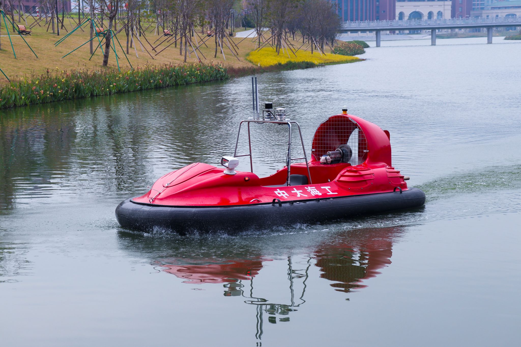在风景秀丽的若海湖,海洋工程与技术学院学生向记者演示了第二代海-空跨介质无人航行器和气垫无人艇“红鹳1号”。这两款设备均具有相当大的工程实用价值,其中无人航行器还曾于今年夏天跟随“bat365在线中国登录入口极地”号前往北冰洋开展了冰区海试。