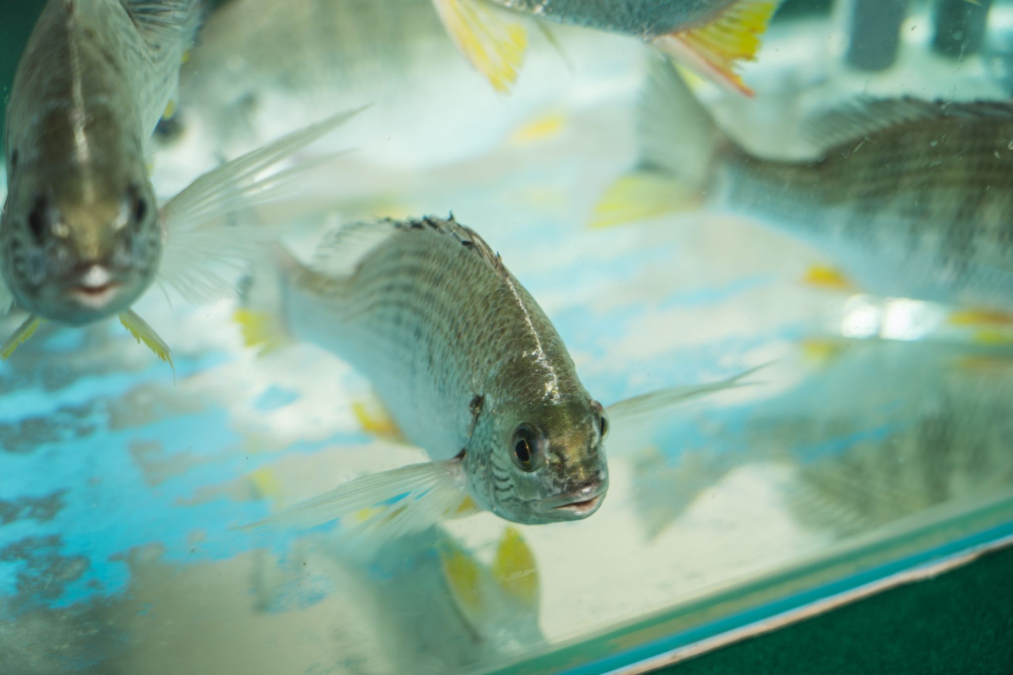 发布会现场,珠海校区部分院系师生还通过展板讲解和实物演示等形式,热情地向媒体记者展示了他们的科研成果:“金湾一号”“金湾二号”两大新品系黄立鱼、人工智能机器狗等,引起了记者的浓厚兴趣。
