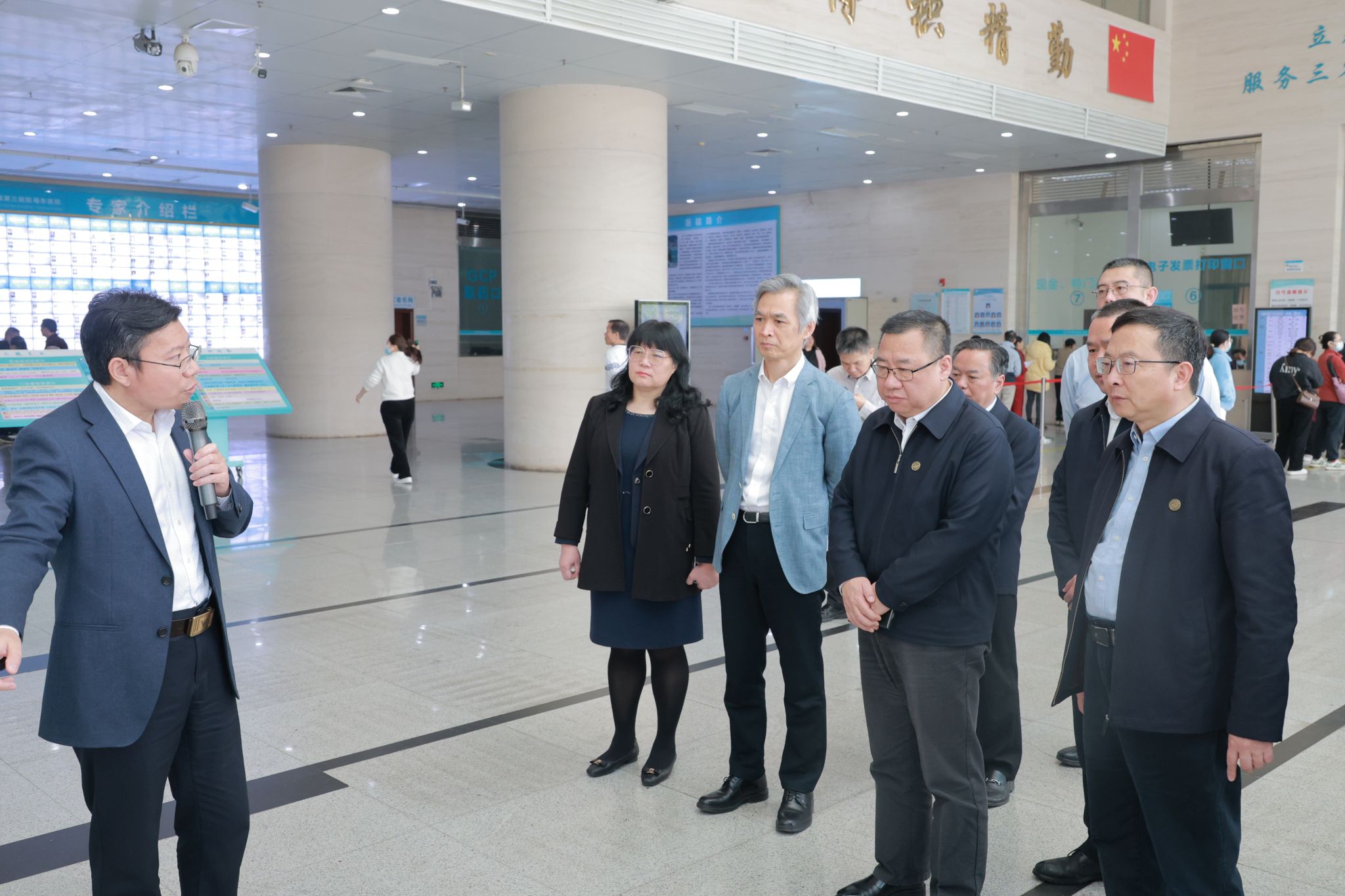 4月3日上午,朱孔军书记高松校长一行来到中山三院粤东医院调研,听取医院工作汇报,并与现场的一线干部职工交流,勉励大家进一步做好医院各项工作,发挥中大和三院的资源优势,扩大服务和培训范围,努力培养优秀医学人才,造福人民群众。