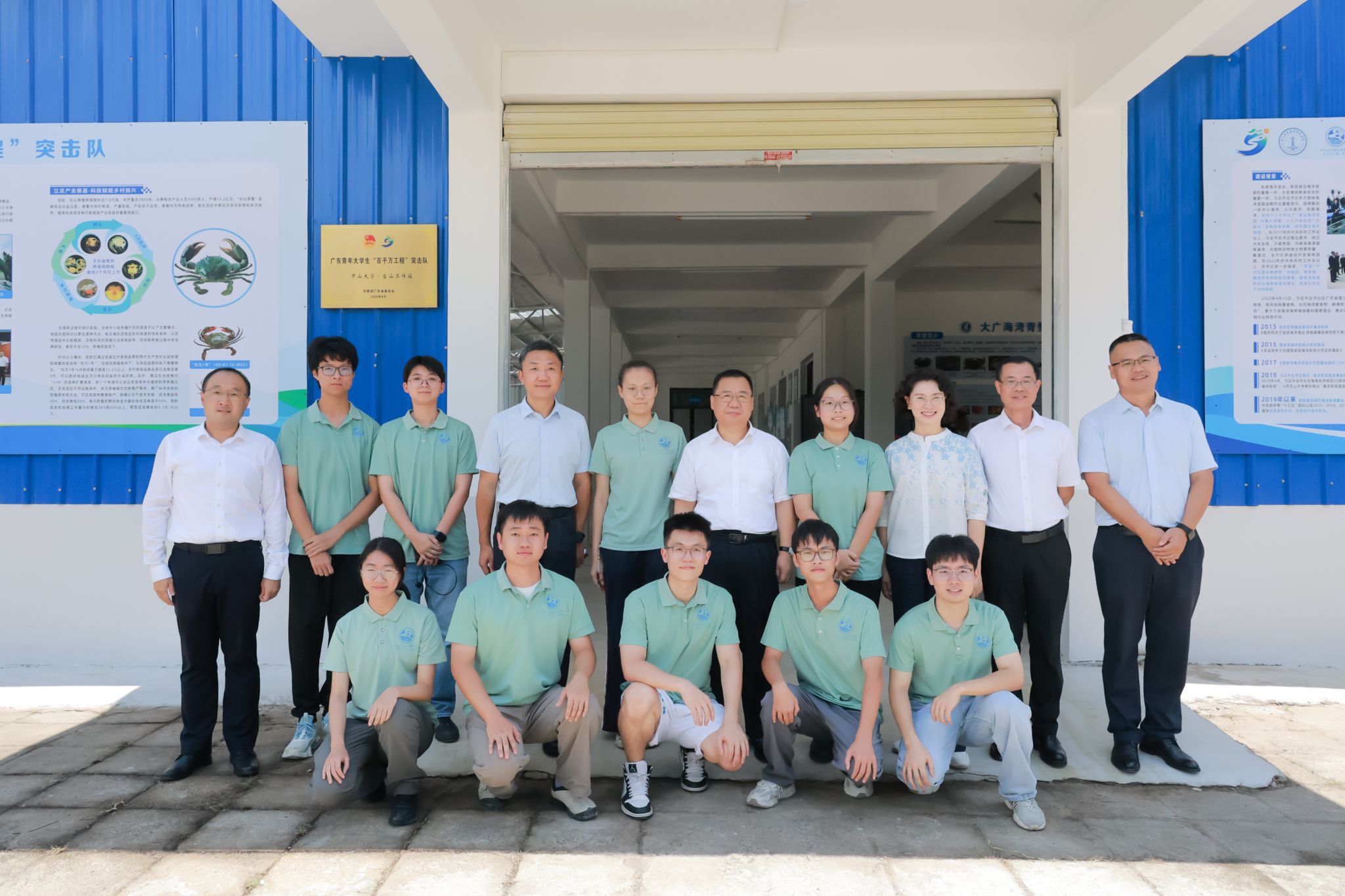 在广东青年大学生“百千万工程”突击队bat365在线中国登录入口·台山工作站暨大广海湾青蟹种苗繁育示范中心,朱孔军调研青蟹繁育工作,并与在此驻点的海洋科学学院师生深入交流,了解“百千万工程”实践服务活动开展情况。他勉励学生们从产业实际和当地需求出发,凝练学术问题,理论和实践相结合,服务当地群众。