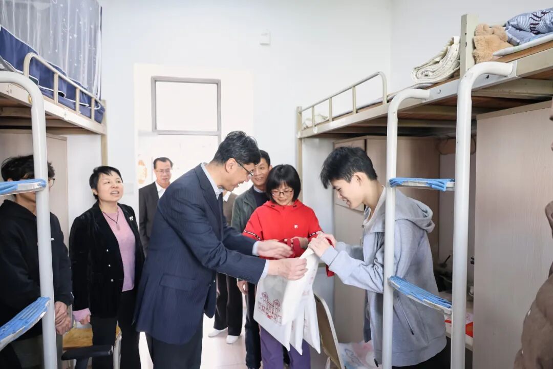 寒假期间,校园静谧中不失暖意。日前,刘承功分别前往深圳校区和珠海校区,走访保卫值班室、物业服务中心、学生食堂等地,检查寒假期间校园安全、后勤保障与生活服务安排,慰问在岗职工。他还走进学生宿舍,与留校同学亲切交流,询问假期安排与学业发展,勉励大家珍惜时光、夯实基础,未来积极服务国家战略与社会需要。走访慰问中,他强调要始终坚持以师生为中心,持续改善工作学习条件,扎实做好服务保障,让大家安心工作、舒心学习、暖心过节。全校上下要凝心聚力,共同推动学校事业发展再上新台阶。