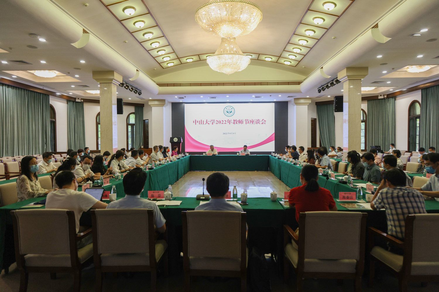 中大新闻网广州9月10日电(记者孙琛、熊予、樊雨瑶)值此教师节与中秋节来临之际,9月9日上午,我校在广州校区南校园怀士堂举行2022年教师节座谈会。围绕“迎接党的二十大,培根铸魂育新人”这一主题,与会代表就心怀“国之大者”,勇担培育时代新人的历史使命展开了热烈讨论,并在会前集体观看了《习近平的教师情》专题片。校党委书记陈春声教授,校党委副书记、校长高松院士出席教师节座谈会。来自各院系、附属医院的30多位教师代表和学校相关职能部门负责人参加活动。会议由校党委副书记国亚萍主持。