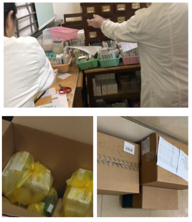 西区疫情防控期间,南校园门诊部药房根据需求调配药品,由志愿者送药上门