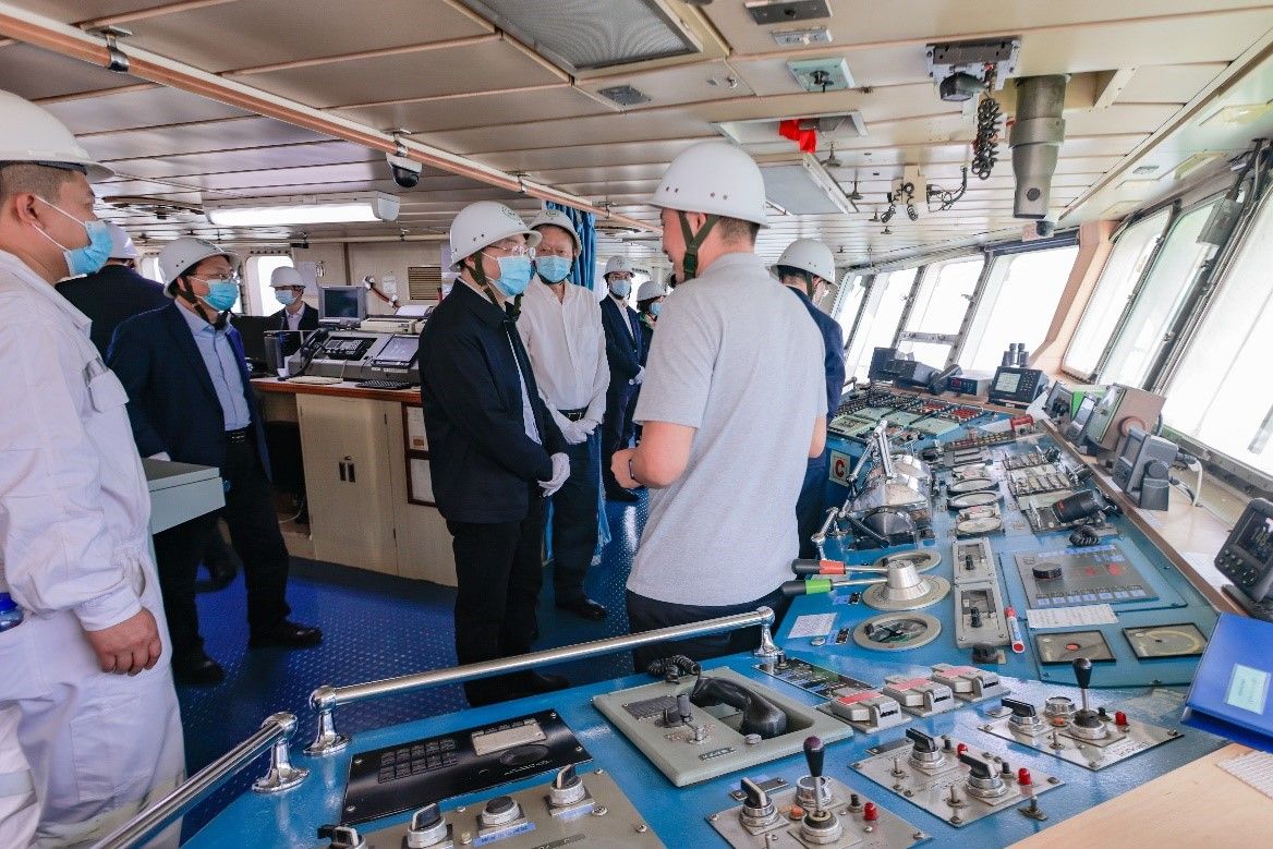 调研“bat365在线中国登录入口极地”号(来源:党委宣传部 孙琛摄)