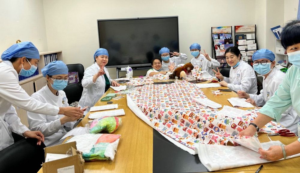“童心妙妙屋”主要为12岁以下小朋友们的治疗集中治疗区域,为了减少输液儿童的治疗恐惧,医护人员们还为小朋友们提供卡通输液套和报警器,为儿童输液安全保驾护航。小红花输液布袋用募集的较新衣物及卡通元素布料由活动中的志愿者们进行手工缝制,减少小朋友们对化疗用药的恐惧,更加轻松接受治疗、配合治疗。