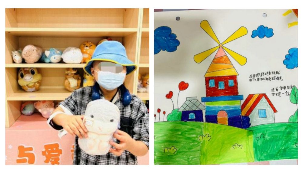 在日间化疗中心有一间魔法“加油小屋”,大家可以在里面写下祝福,静待花开。在六一国际儿童节来临之际,这间魔法“加油小屋”——“童心妙妙屋”举行了送你一朵小红花六一关爱活动——一画一爱,一童一梦,与爱同行。