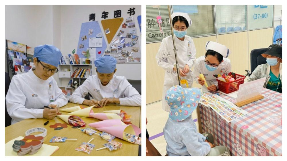 护士为患儿制作小红花