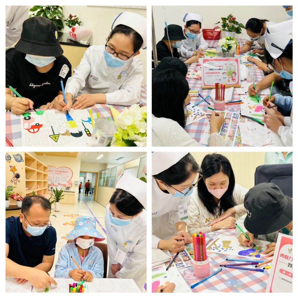 “童心妙妙屋”项目用心守护用爱呵护,为小天使和家长们带来了“我是小小绘画家”的“超解压”填色游戏。五彩的画笔在小天使们的手中,化为跳动的音符和护士姐姐们诉说了治疗时最想说的话,和家长们一起绘画着内心的“缤纷世界”。