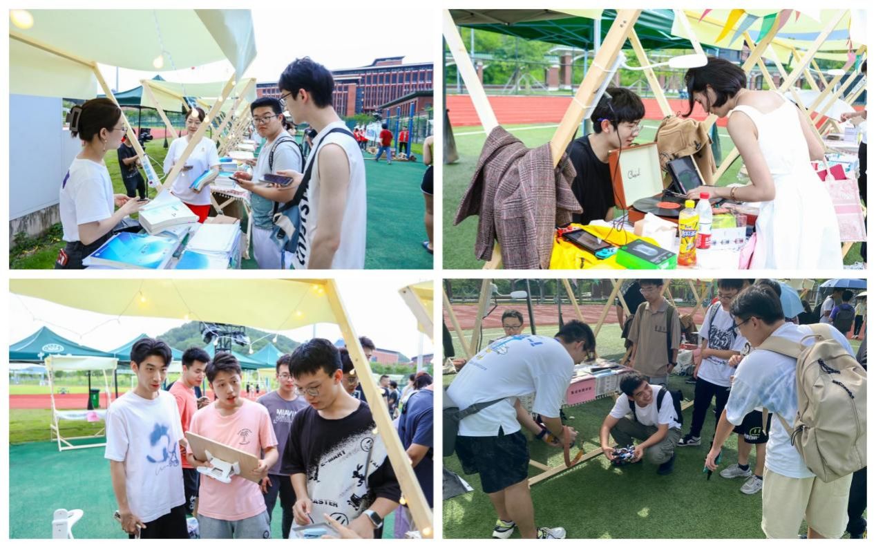 集市上的摊位各具特色,医学院的摊位上摆满了厚厚的“蓝大本”,集成电路学院向同学们展示了自研的电动小车,航空航天学院摊位上的电子设备格外受欢迎,先进能源学院的摊位负责人为同学们介绍售卖物品的特点和细节,笃行社团设计了各类周边,大学服务中心也借此机会向校区师生宣传无纸化办公的绿色理念和即将上线的师生办事新业务。