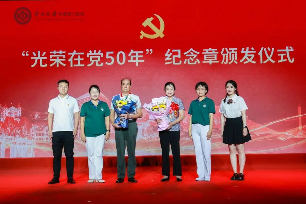 晚会上,还发布了《学思想 强党性 重实践 建新功——中山六院首批共产党员示范岗巡礼》微视频,并为2名党龄满50周年老党员颁发“光荣在党50年”纪念章。由院领导、党支部书记与中六医护组成的合唱团齐唱《唱支山歌给党听》,颂歌献给党,建功新时代。在悠扬的合唱声中,主题活动圆满落幕。