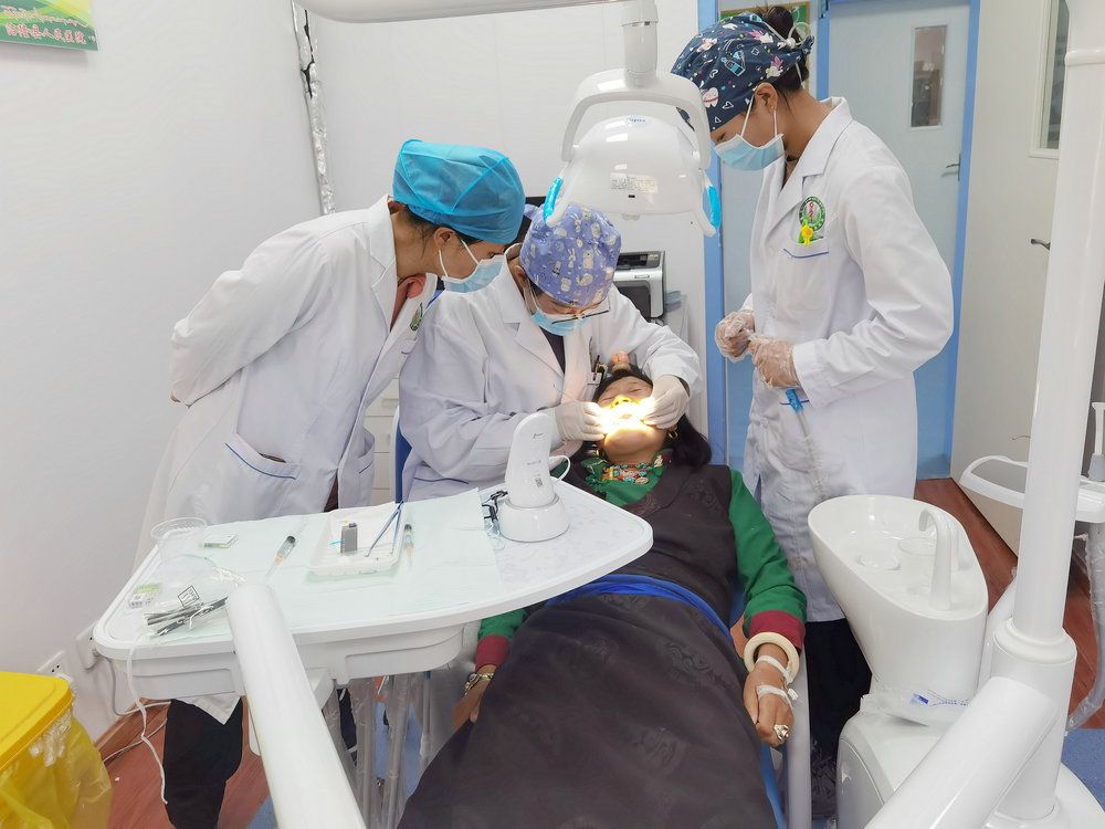 “这是我到这里来的使命,我一定要把口腔科建起来!”程慧琳抵藏后暗下决心。她第一时间对当地居民口腔健康状况及预防治疗情况开展调研,发现当地各年龄段的口腔疾病存在发病率高、诊治率低的特点,又因医疗队所在的洛隆县从县城前往三百公里外的昌都市区又需要驱车六个小时,既增加了患者看病耗费的时间,也极易拖延加重病情。