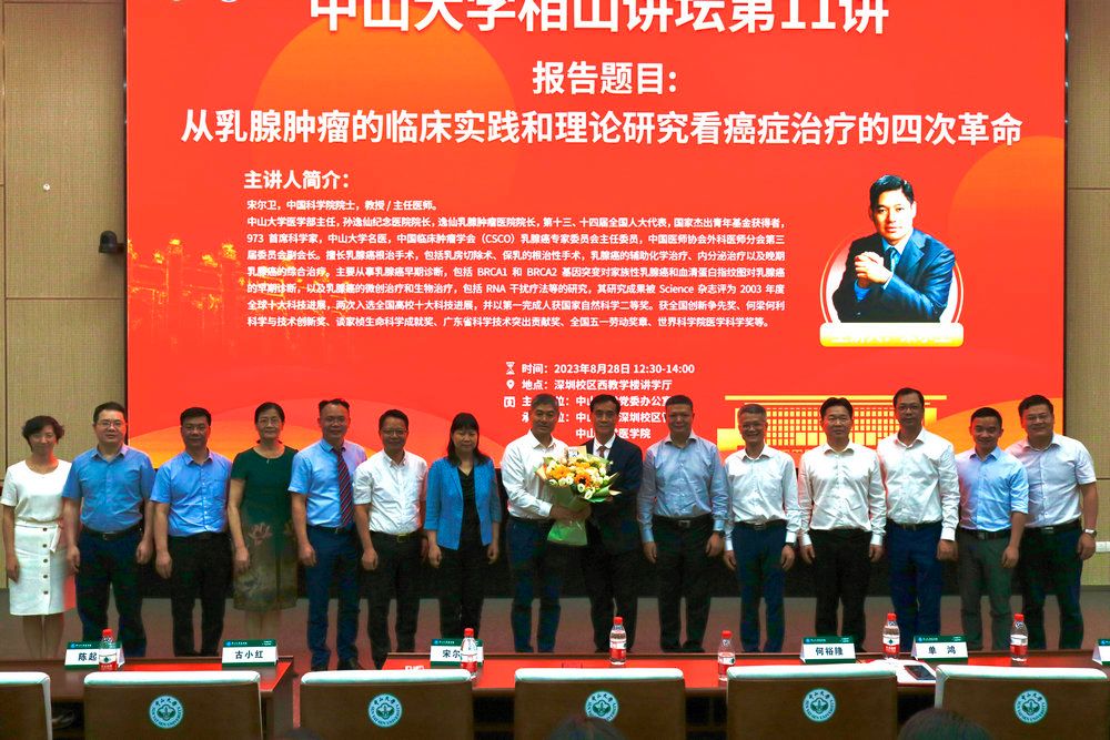 中大新闻网讯(通讯员罗天阳)8月28日中午,在深圳校区西教讲学厅,中国科学院院士宋尔卫教授受邀作客第11讲“相山讲坛”,以《从乳腺肿瘤的临床实践和理论研究看癌症治疗的四次革命》为题,为师生作了一堂生动精彩的讲座。
