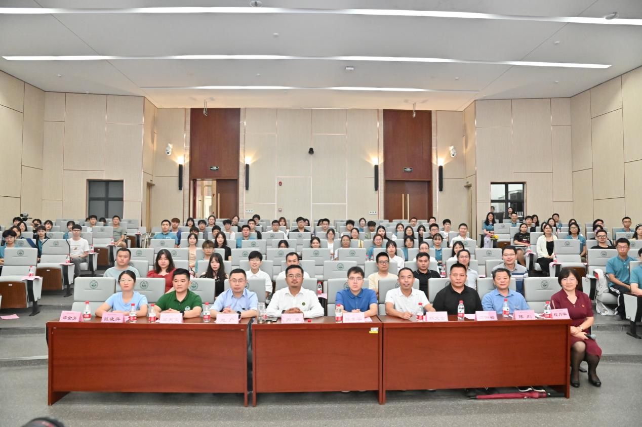 活动由农学院党委书记程月华主持,深圳市丰农控股公司联合创始人周单、天天学农CEO赵广,瑞丰公司总经理陈东宇、总裁助理赖文全、土壤修护研究院院长闫保福等合作企业领导,学校党委组织部副处级组织员陈彪,农学院党政领导及全体师生参加了大会,在广州校区的农学院2023级本科生以线上形式参会。