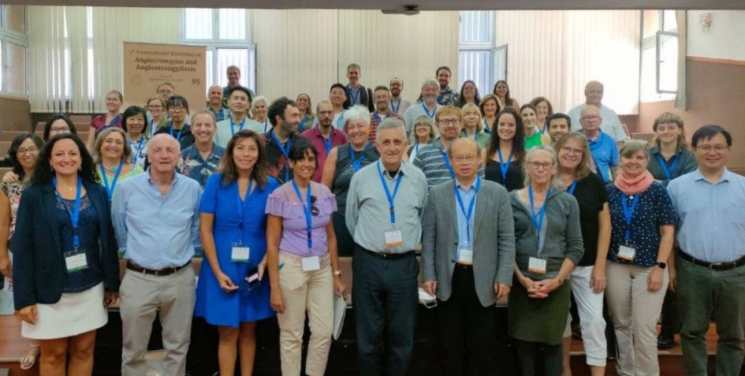 ⼴州管圆线⾍是⼀种⼈兽共患寄⽣⾍,⼈因⽣⻝含有3期幼⾍的螺⾁或被在期幼⾍污染的蔬菜⽽感染,可引起嗜酸性粒细胞增多性炎脑和脑膜脑炎,呈全球分布。今年是我国著名寄⽣⾍学家陈⼼陶教授发现⼴州管圆线⾍ 90 周年。陈⼼陶教授开创了⼴州管圆线⾍研究的学科领域,为管圆线⾍病的防治奠定了基础。本次会议特别将主题确定为“陈⼼陶教授发现⼴州管圆线⾍90周年纪念”,表达对陈⼼陶教授的崇⾼敬意。会议采⽤线下线上相结合的形式,交流了近年来⼴州管圆线⾍与管圆线⾍病的研究进展,探讨了建⽴国际合作联盟的可⾏性,来⾃⻄班⽛、中国、美国、法国、英国、巴⻄、古巴、瑞⼠、秘鲁、捷克等 15 个国家的 50 多位专家学者参加了线下会议。