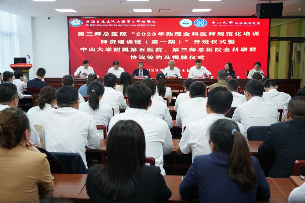 为扎实做好全科医生及全科师资培训工作,提升区域全科医生医疗水平,近日,附属第五医院在新疆图木舒克市举办了“2023年助理全科医生师资培训班”暨“国际化全科医生培训班”。新疆生产建设兵团第三师图木舒克市卫健委党组书记、主任齐勇,新疆生产建设兵团第三师图木舒克市总医院党委副书记、院长潘惠忠,附属第五医院副院长苏中振、全科医学部主任薛青和助理全科医生代表等100余人参加了会议。