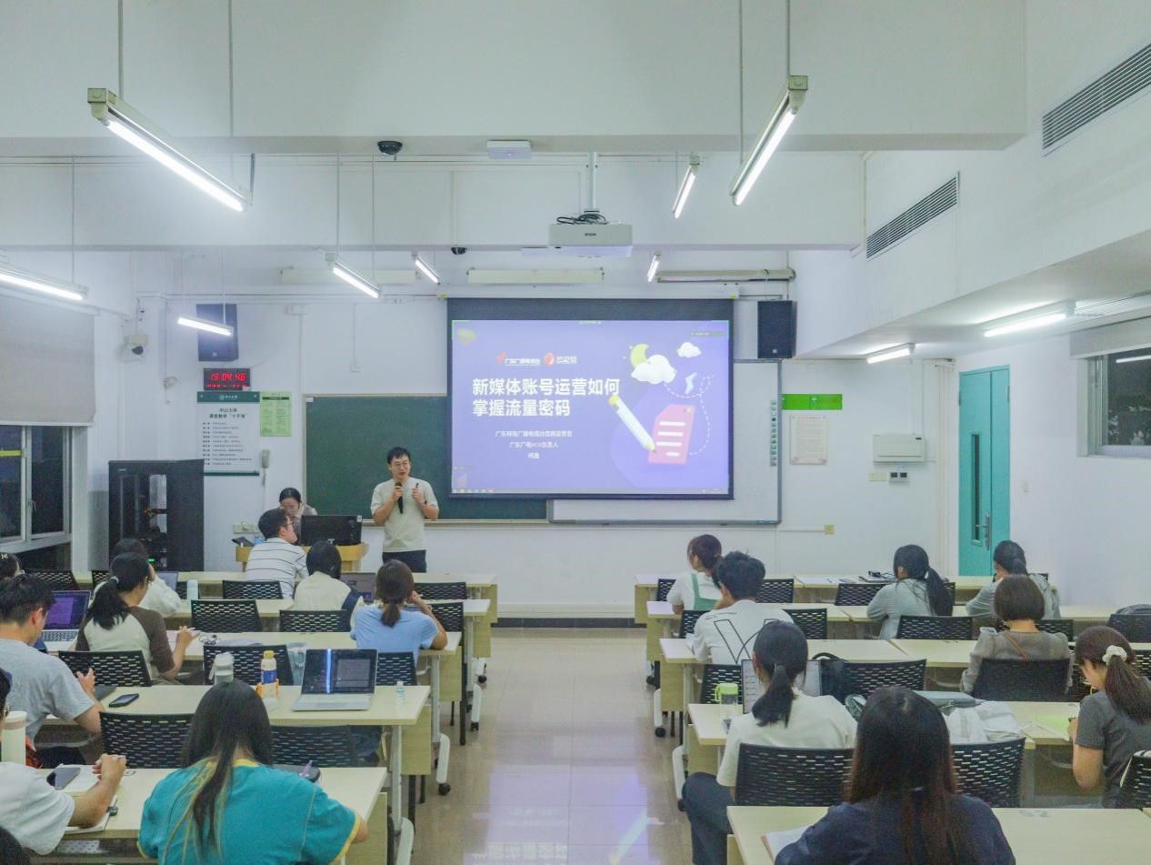 作为广东网络广播电视台首席运营官、广东广电MCN负责人,柯鑫在现场结合广东广播电视台融媒体渠道传播运营和新媒体品牌打造的实践经验,讲述了如何在保持主流媒体调性的同时,能够掌握流量密码,提升新闻舆论的传播力、影响力。此外,还向师生传授舆情处理、视频制作、抖音账号打造、微博运营技巧等方面的融媒体实战技能。
