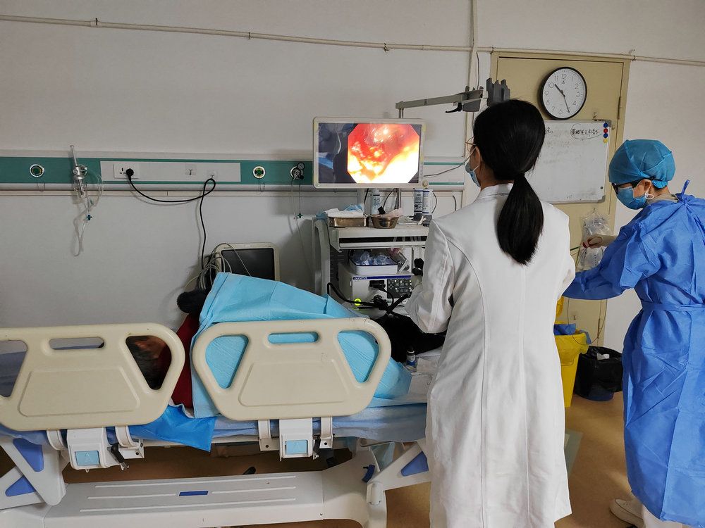 方素芬医生为尹先生做肠镜检查