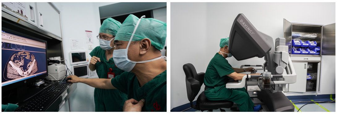 11月21日,何裕隆教授携手“老搭档”达芬奇机器人,为尹先生实施了“机器人辅助下直肠癌根治术”。