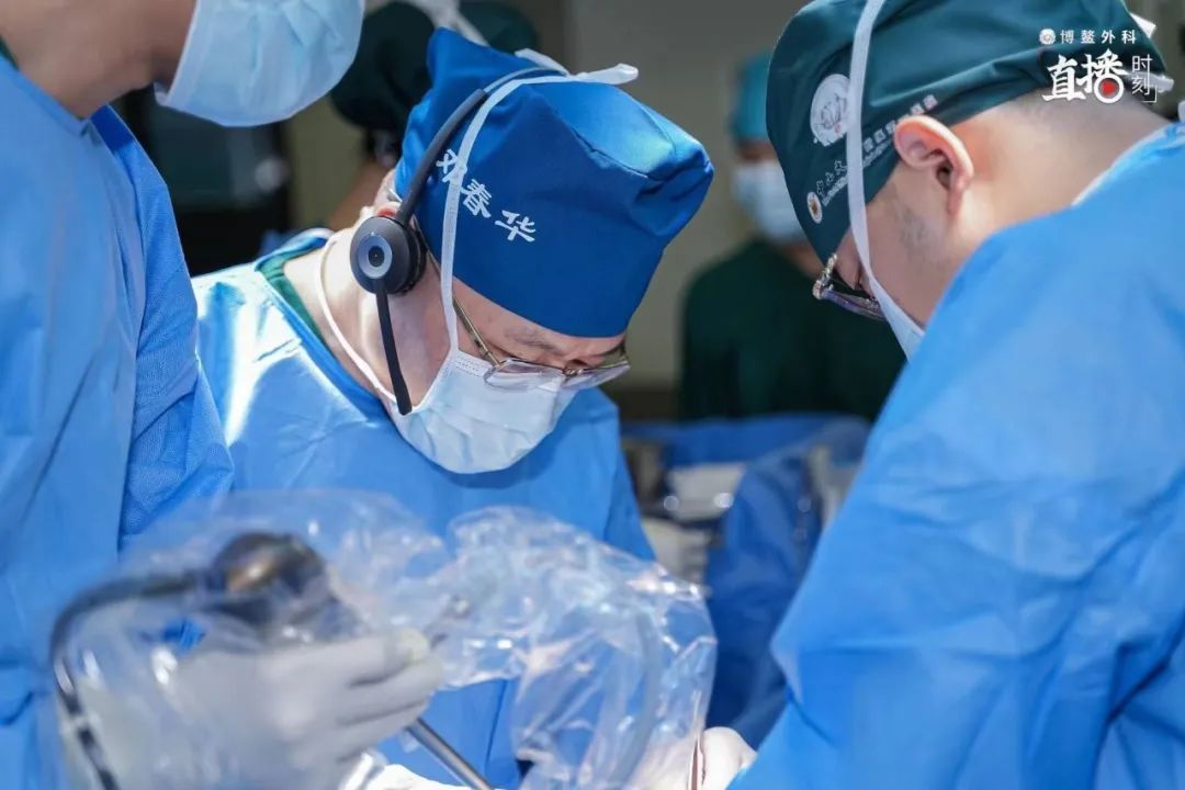 开幕式后,首场手术直播正式开始。首日,泌尿外科、妇科、肝胆胰外科中心、神经外科、胸外科五大学科的21位外科高手,开展了包括“机器人辅助肾部分切术”“腹腔镜下宫颈癌根治术”“经典胰十二指肠切除术”“AR镜下导航前交通动脉瘤夹闭术”“机器人辅助右上肺叶切除术+肺门纵膈淋巴结清扫术”在内的30台手术。