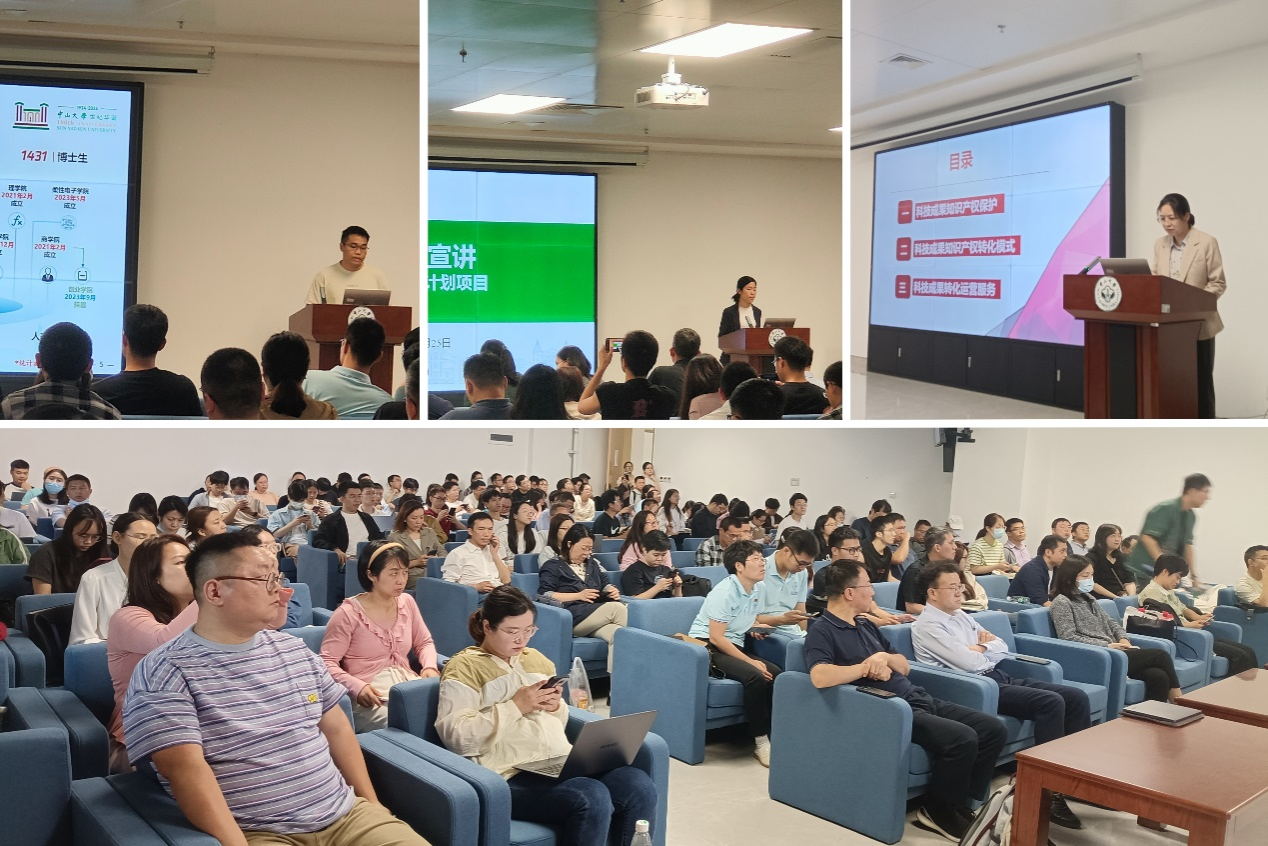 科学研究院横向处还介绍了学校科技成果转化政策和服务,并向科研人员推介了中大知产公司、中大科技园、中部知光、转化中心和广知中心等五家科技成果转化的市场化运营服务团队。