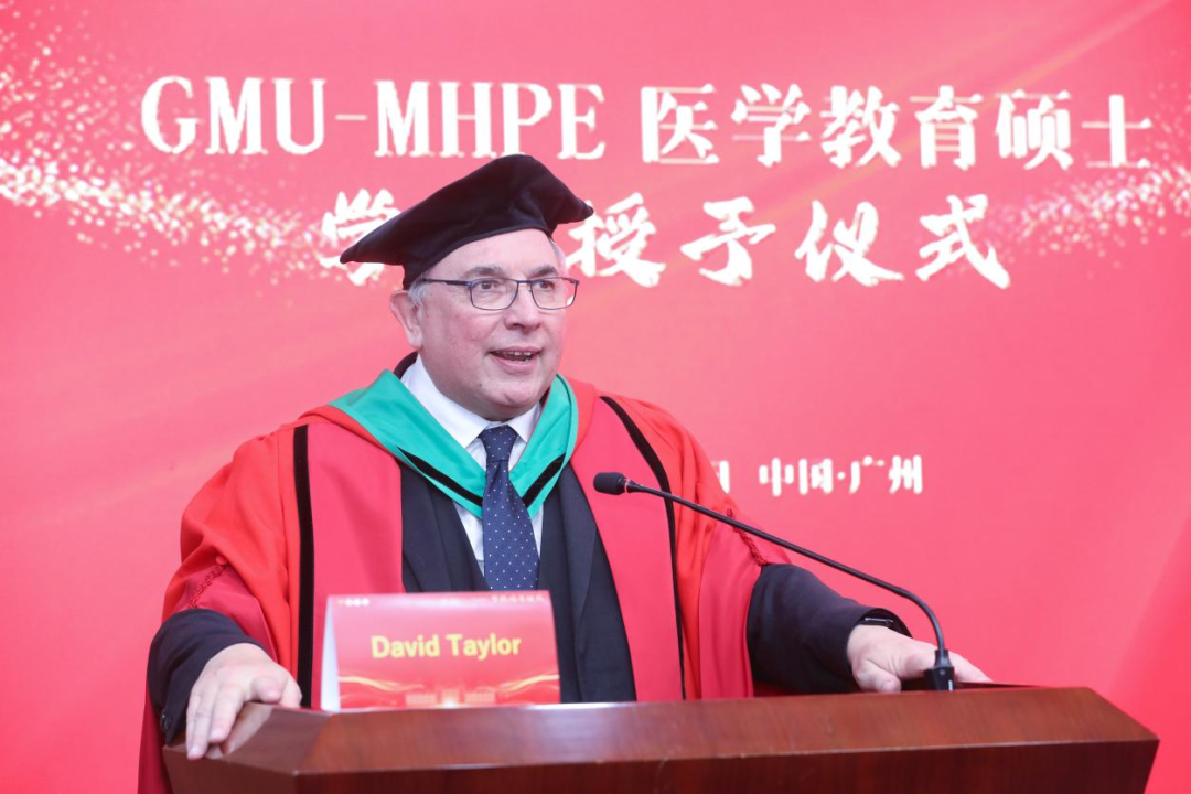 中大新闻网讯(通讯员张玉琦)3月21日,附属第一医院(以下简称“中山一院”)18位教学骨干获授阿联酋海湾医科大学(Gulf Medical University,GMU)医学教育硕士学位(Master of Health Professions Education, MHPE)。GMU医学教育领导力与创新中心主任David Taylor教授为学位获得者颁发学位证书。