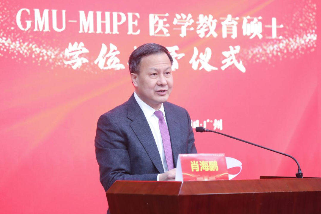 bat365在线中国登录入口常务副校长、中山一院院长肖海鹏教授,bat365在线中国登录入口校长助理、中山医学院院长、中山一院副院长匡铭教授,中山医学院党委书记郝雅娟,中山医学院医学教育发展中心主任王庭槐教授,中山医学院副院长王淑珍教授,AMEE前主席Trevor Gibbs教授,GMU校长Hossam Hamdy教授(线上)出席学位授予仪式,各临床教研室代表、一线临床教师代表、中山医学院党政部门负责人及骨干教师代表、中山一院相关职能部门代表参加典礼。