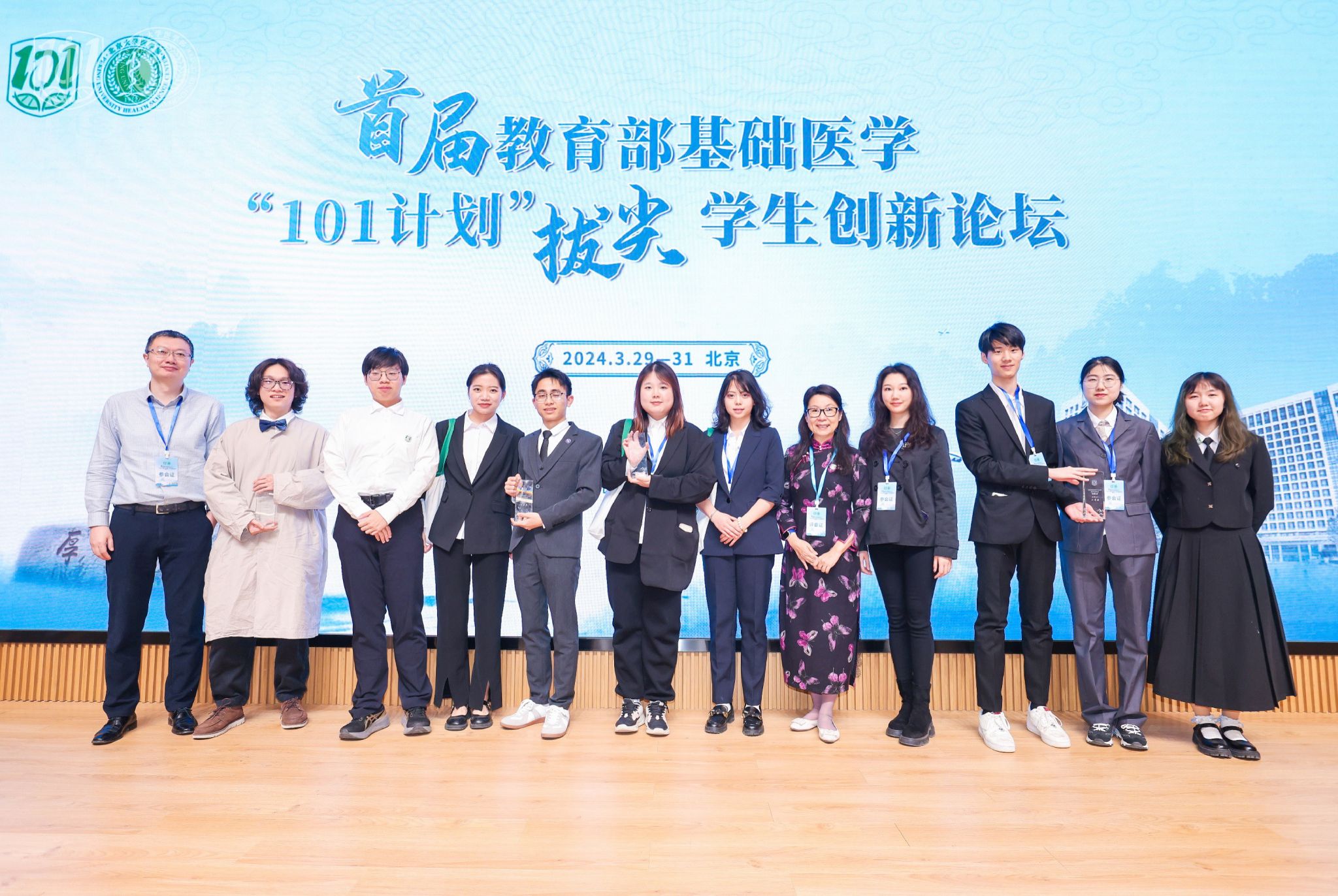中大新闻网讯(通讯员张玉琦)近日,首届教育部基础医学“101计划”拔尖学生创新论坛在北京举办。本次论坛由北京大学医学部承办,旨在促进基础医学专业拔尖学生的科研交流,推动基础医学拔尖人才培养模式的创新与发展。论坛邀请北京大学、浙江大学、上海交通大学、复旦大学、bat365在线中国登录入口等11所高校基础医学拔尖计划2.0基地参加,中山医学院基础医学拔尖计划同学踊跃报名。经院内遴选,2024年3月29日至31日,学院李勃兴教授、汪雪兰副教授带领9名同学赴北京参加论坛并荣获佳绩,最终墙报展示项目获二等奖2项、三等奖1项,大会报告项目获三等奖1项。