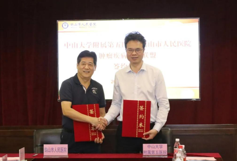随后,双方签订了肿瘤疾病专科联盟补充协议书和鼻咽癌防治专科联盟协议书,并就如何更加精准做好“组团式”帮扶工作进行了深入探讨。附属第五医院向鹤山市人民医院赠送了200本《鼻咽癌诊疗手册》。