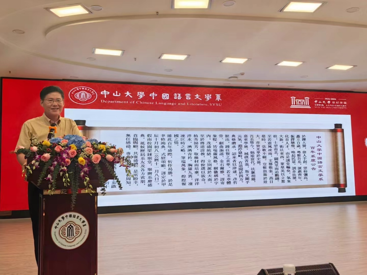 彭玉平主任宣读了百年系庆公告并作解读。百年系庆公告由中文系赵宏祥副教授以文言文形式执笔撰写,展现了百年中文的深厚底蕴和学科特色。