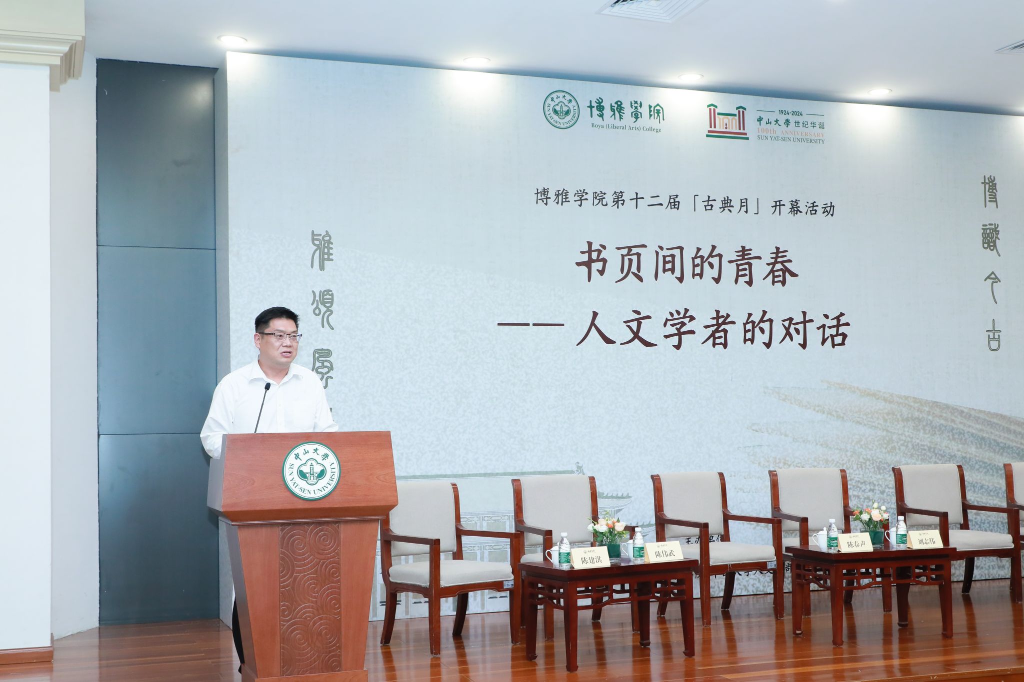 中大新闻网讯(通讯员孟琳)10月18日下午,由党委学生工作部、校团委和博雅学院共同举办的“博识今古 雅颂风华”博雅学院第十二届“古典月”开幕活动在南校园怀士堂举行。bat365在线中国登录入口陈春声教授等知名学者,人文学部、社会科学学部、党委学生工作部、中国语言文学系、历史学系、哲学系、政治与公共事务管理学院、中山医学院等院系相关领导,以及博雅学院双聘教师、党政领导班子出席,博雅学院院长陈建洪教授主持开幕活动。
