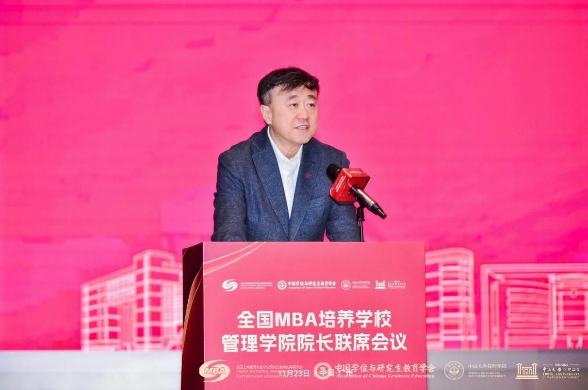 教育部学位管理与研究生教育司培养质量处调研员王亮在致辞中表示,面对新形势、新要求,中国MBA教育要聚焦学位法的落实,推进MBA教育创新发展;聚焦回应国家需求,创新人才培养模式;聚焦AI赋能,提升培养能力;聚焦质量保障,统筹推进规模扩大与内涵建设相协调。